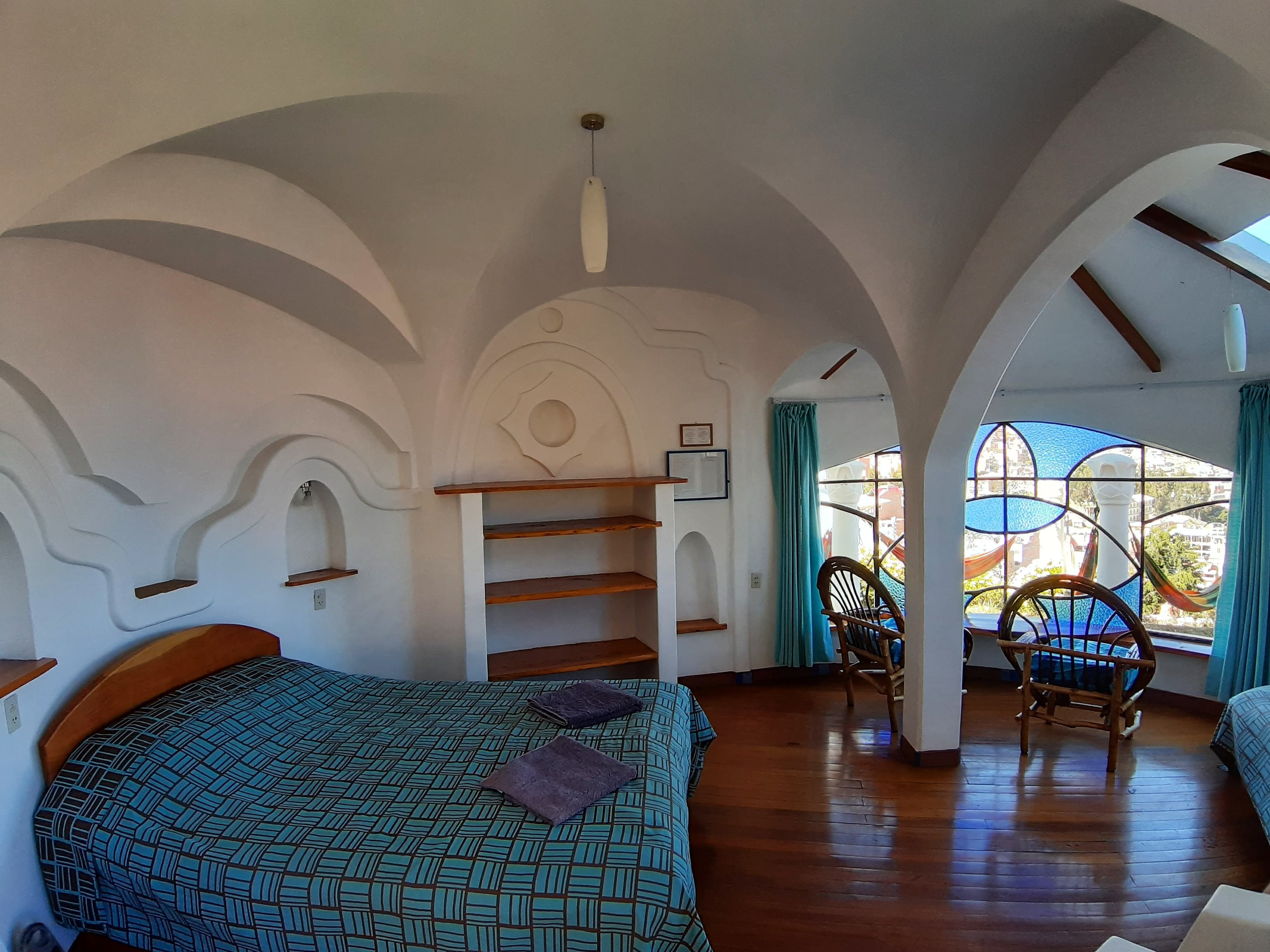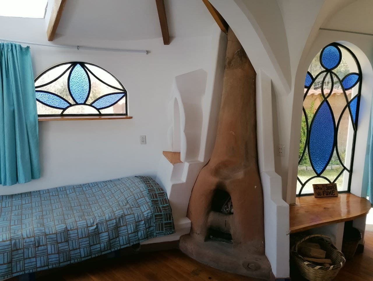 La suite "Aladdin" es un ambiente mágico dominado por muchos arcos y curvaturas en su construcción. Cuenta con una cama matrimonial y una cama simple, un área de living y baño privado. Para su comodidad tiene calefacción central y una chimenea con abundante leña gratis. No tiene una cocina, pero tiene su caldera con té, café y azúcar gratis.